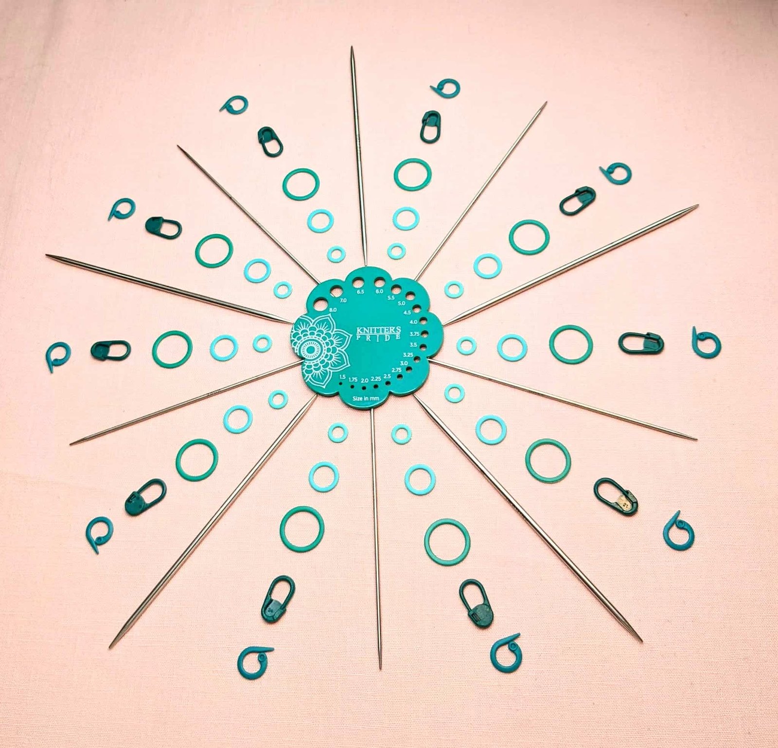 This Grateful set includes many types of stitch markers: Locking markers to hold a few stitches apart, round markers you can only move as you get to them, or split stitch markers you can use to hold a dropped stitch in place until you can fix it.