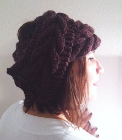 The Knitted Turban Scarf Project is a two cable knitted strip that can be worn as a necklace, doubled as a scarf of worn around your head as a turban (it also kind of looks like a beanie hat).