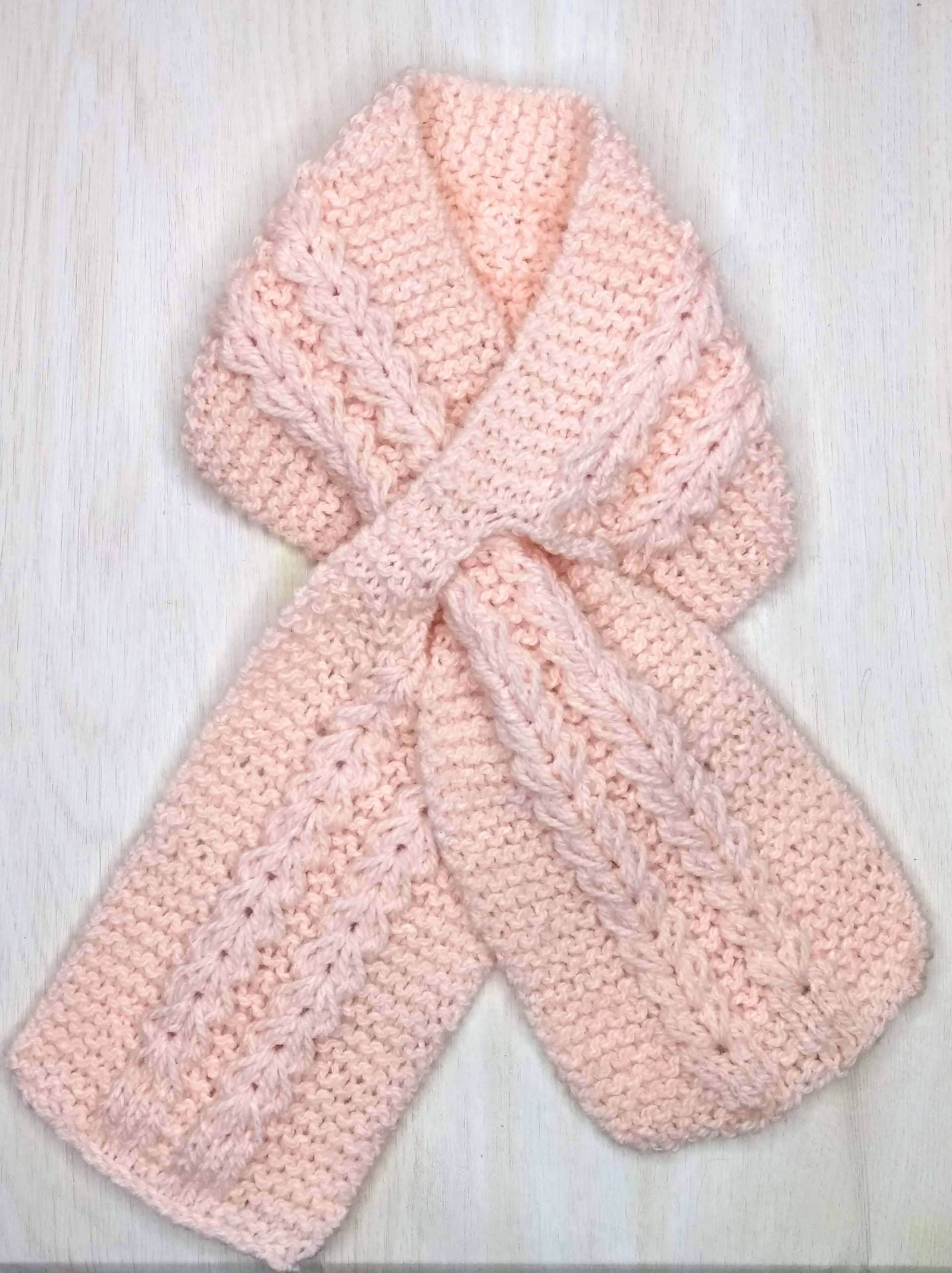 This is a lovely set of instant downloadable instructions made for toddlers (12-24 months) that includes both a big pom-pom beanie hat instructions featuring a heart or flower-like pattern as well as a keyhole scarf instructions with the same pattern. The keyhole scarf is completely baby safe and perfect for kids on the go.